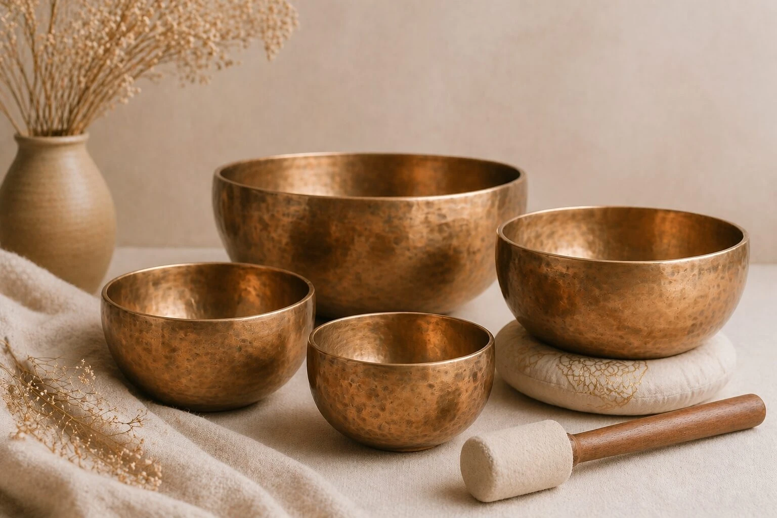 The gentle vibrations of singing bowls calm both body and mind, helping you detach from daily hustle and restore your focus.